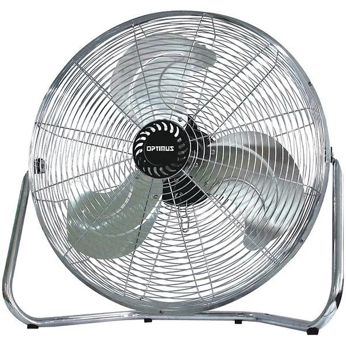 OPTIMUS F-4123 12ANDquot; Industrial Grade High-Velocity FanANDlt;br/ANDgt; 12x22 industrial grade high-velocity fan Powerful 3-speed high-torque motor Reinforced wire grill All metal construction Aluminum heavy-duty 12x22 blade Head tilts for use as air circulator OSHA approved 3-prong grounded plug Black/chrome
