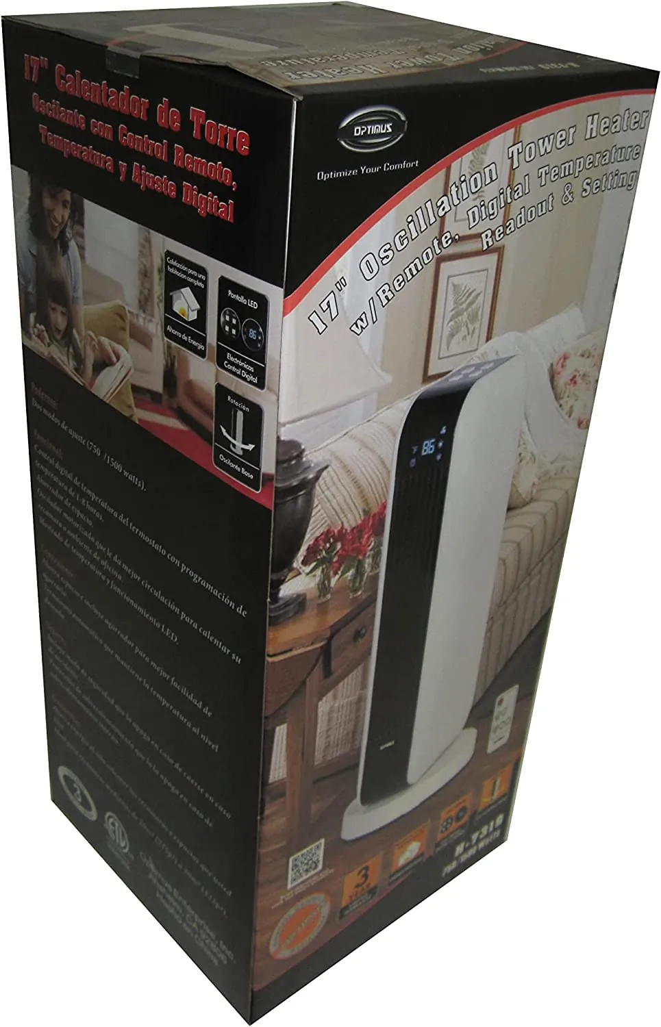 Optimus H-7319 17 In. Oscillating Tower Heater W Remote Digital Temperature Readout Amp; Setting