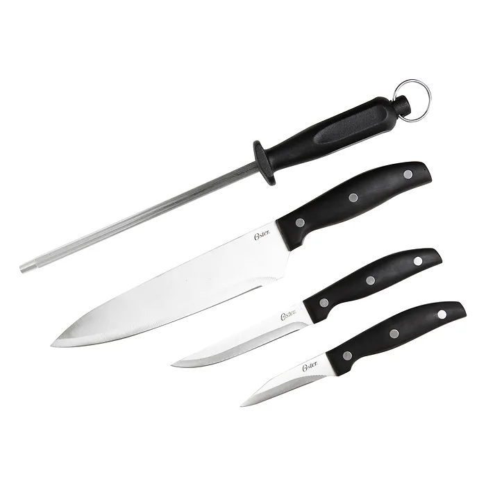 Elevate your kitchen experience with the Oster Granger 4-Piece Stainless Steel Cutlery Set. This expertly crafted cutlery set meets all your slicing and dicing needs with precision and durability. Each knife features stain and rust-resistant blades, ensuring long-lasting performance. The ergonomically designed handles provide comfort during use, making meal preparation a breeze.