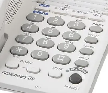 Two-Line Speakerphone with LCD and dataport allows you to talk with a party on line one or two, dial another call on the other line, conference both calls together. Two-line, 16-digit, liquid crystal display (LCD) shows number dialed, call status, duration and operating modes. Features 20 station one-touch dialing, 10 speed-dial stations, headset jack on hook, handset volume control, three-step ringer control, redial and timed flash memory. Data port allows connection of computer, modem, fax or answering machine. Wall-mountable. Optional headset (PCE KX-TCA98) sold separately.