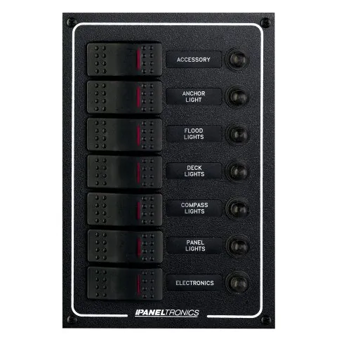 DC 7-Position vertical circuit breaker rocker switch panel