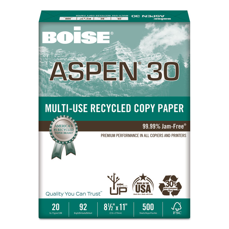 ASPEN 30 MULTI-USE RECYCLED PAPER, 92 BRIGHT, 20LB, 11 X 17, WHITE, 500 SHEETS/REAM, 5 REAMS/CARTON