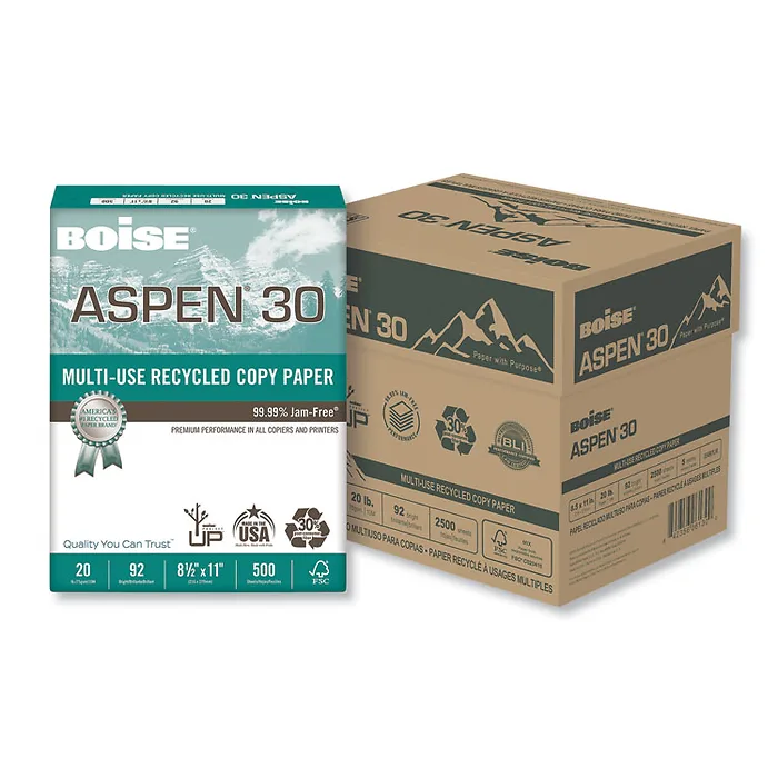 ASPEN 100 MULTI-USE RECYCLED PAPER, 92 BRIGHT, 20LB, 11 X 17, WHITE, 500 SHEETS/REAM, 5 REAMS/CARTON
