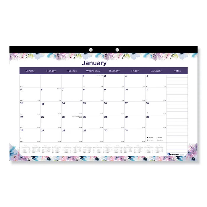 Passion Monthly Deskpad Calendar, Floral Artwork, 22 X 17, White/multicolor Sheets, Black Binding, 12-Month (jan-Dec): 2022
