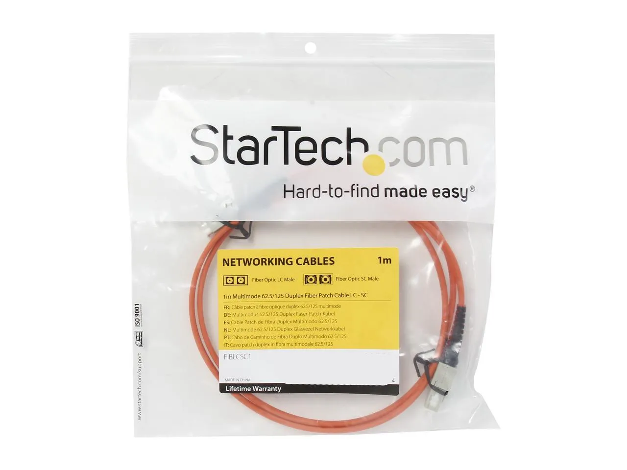 StarTech.com 1m Fiber Optic Cable - Multimode Duplex 62.5/125 - LSZH - LC/SC - OM1 - LC to SC Fiber Patch Cable (FIBLCSC1) - Network cable - LC multi-mode (M) to SC multi-mode (M) - 1 m - fiber optic - duplex - 62.5 / 125 micron