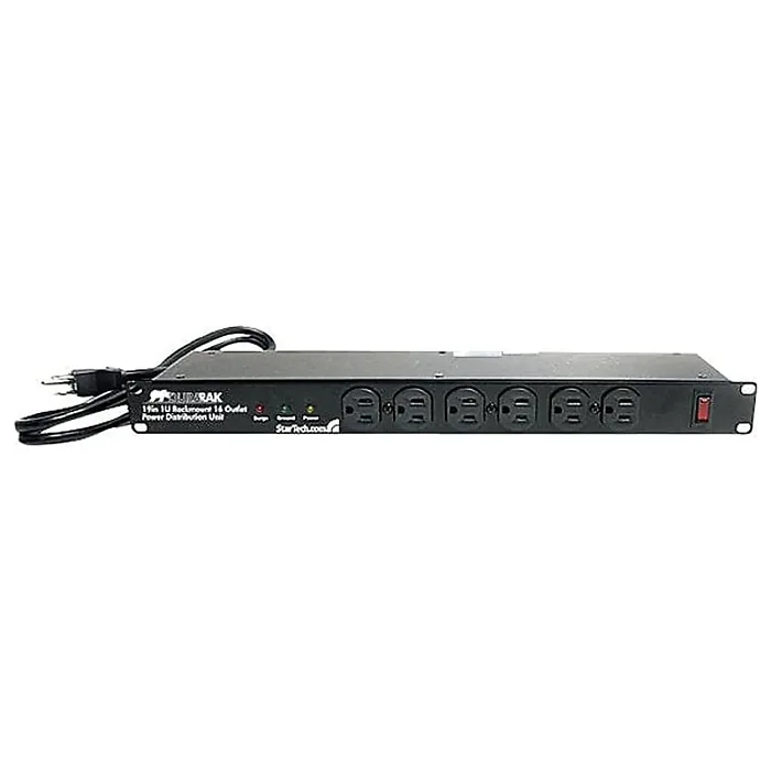 Organize and add additional power outlets to your rack solution Compatible with StarTech.com 4POSTRACKBK 1U Server Rackmount Power Distribution Unit. 16 Outlet Rack Mount Power Strip. Integrated 6ft power cord. LED indicators for ground and surge detection. Illuminated power and reset switch. Add extra outlets to your rack for simple power distribution in your server room or office.