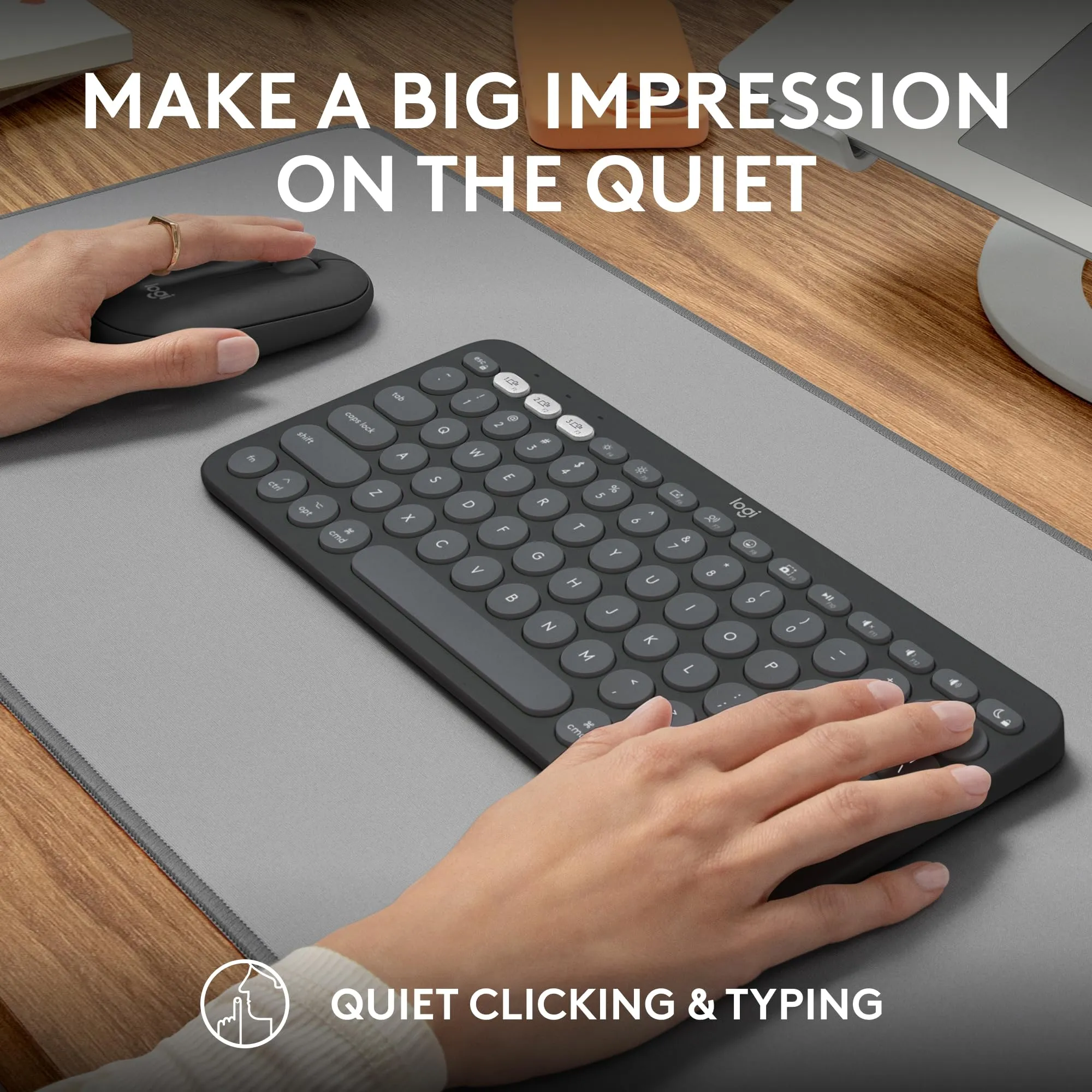 The Pebble 2 Combo MK for Mac in Tonal Graphite offers a sleek and stylish design tailored for Mac users. This combo includes a wireless keyboard and mouse, providing seamless connectivity and a comfortable typing experience.