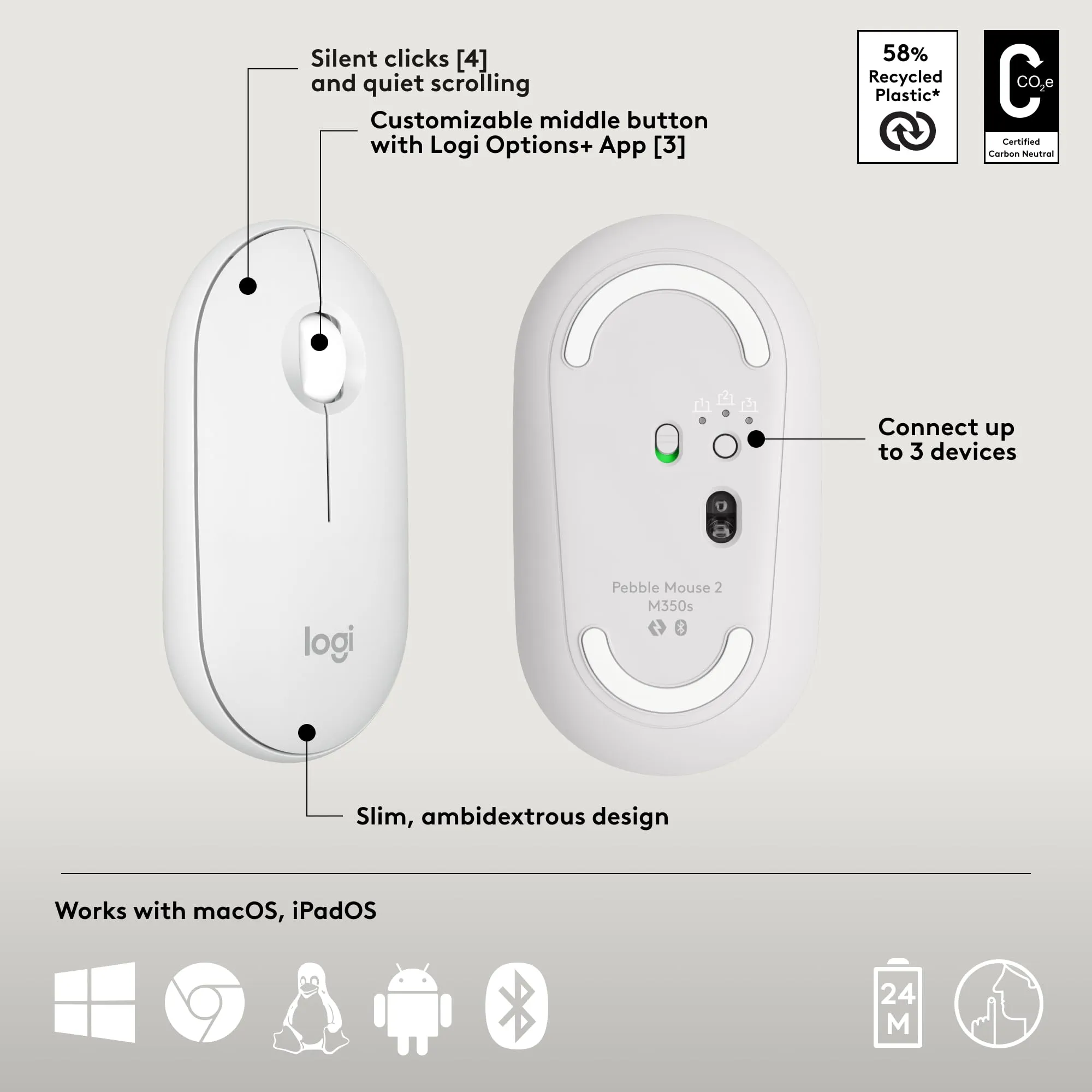 Logitech 920-012201 Pebble 2 Combo Keyboard And Mouse For Mac Tonal White