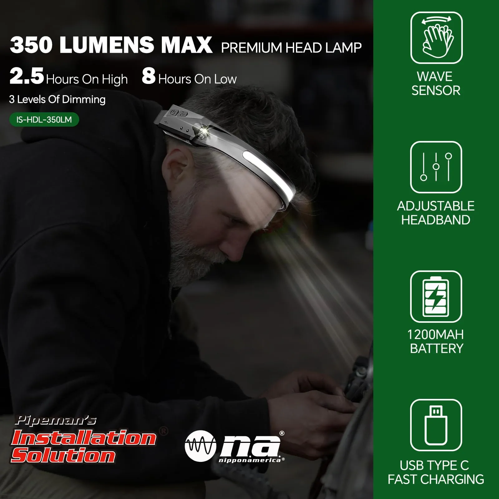 Nippon ISHDL350LM Pipeman's Premium 350 Lumens Head Lamp For Any Task
