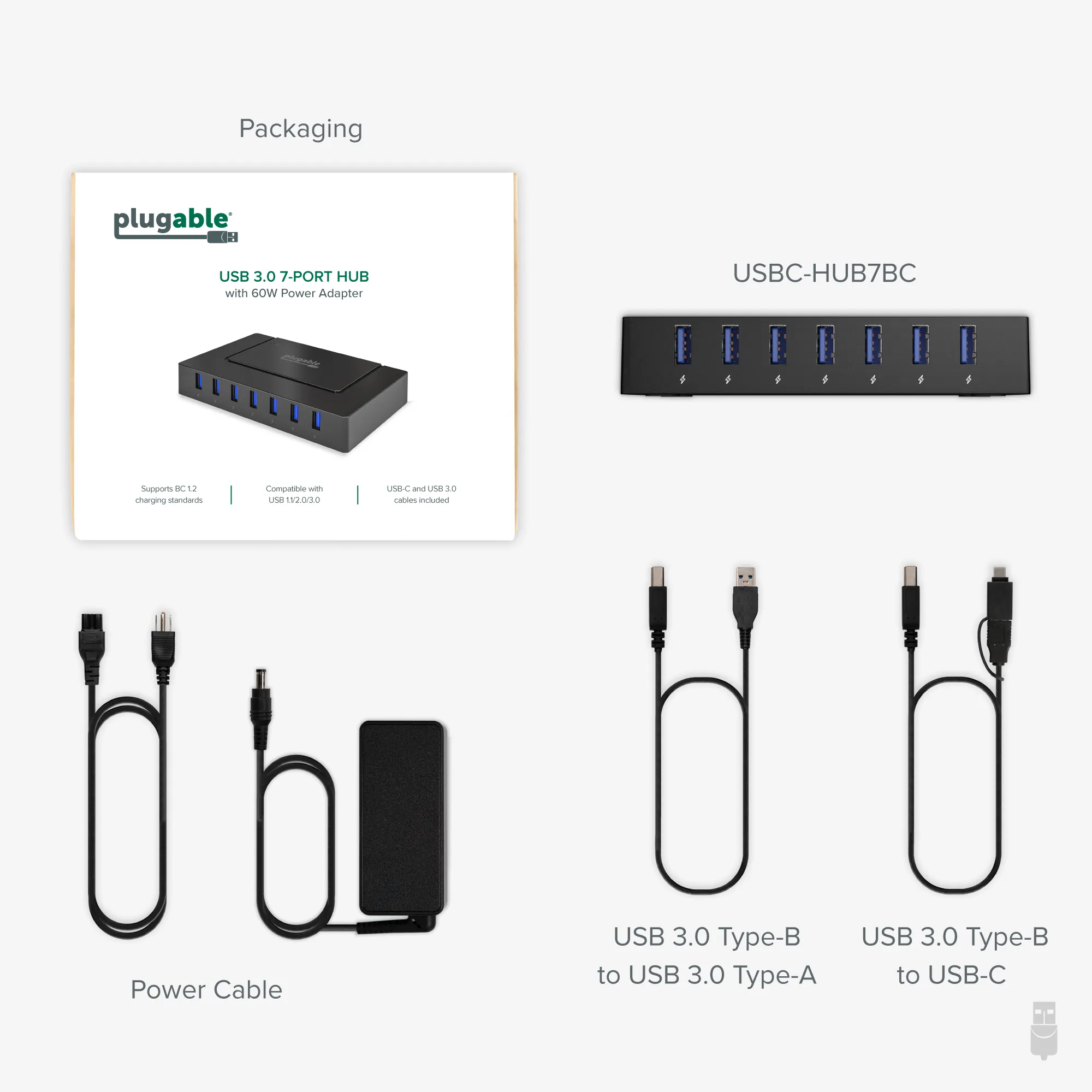 Plugable USBC-HUB7BC Plugable 7in1 Usb Charging Hub With Data Transfer For Laptos With Usbc Or Usb