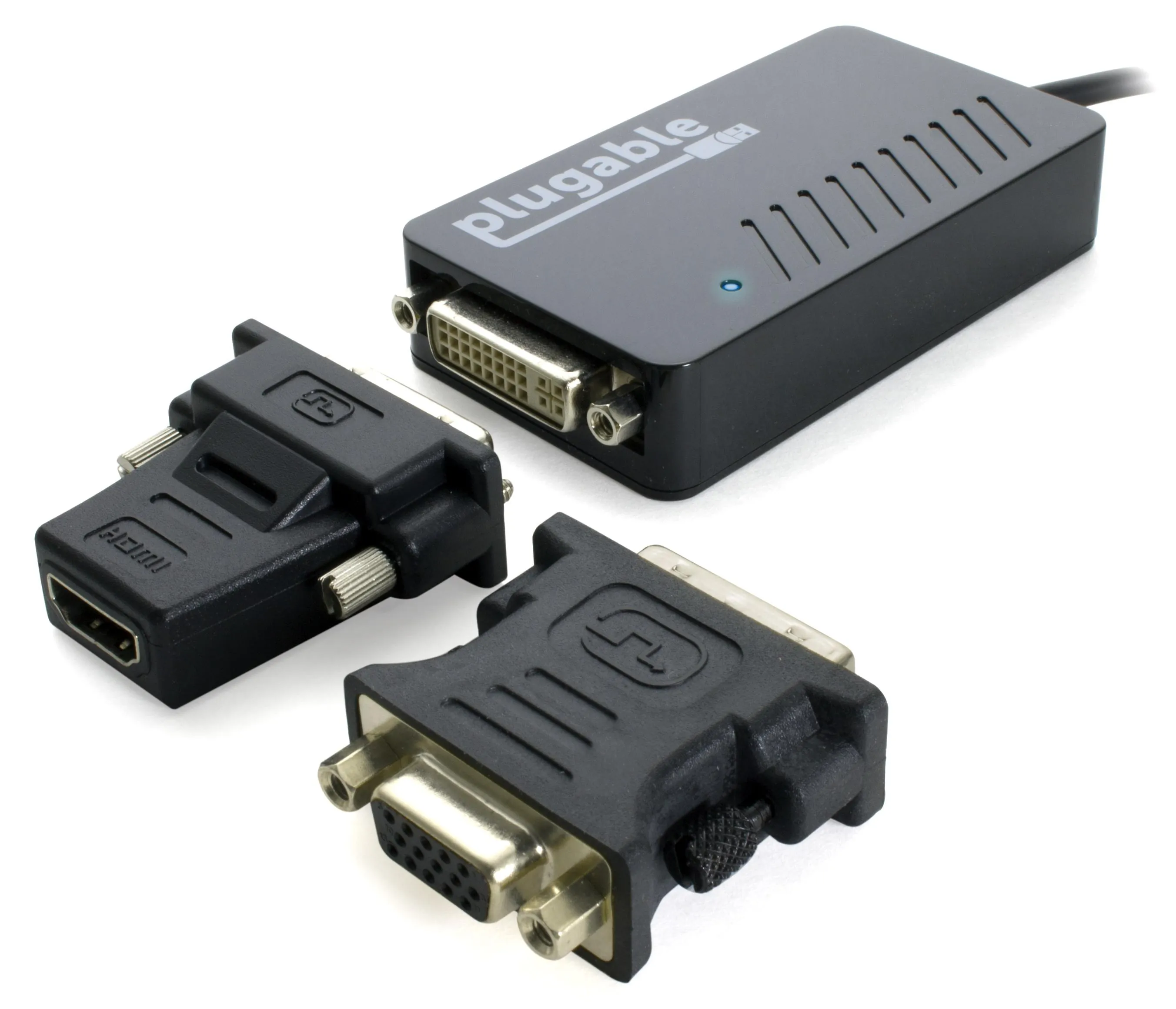 Featuring the DisplayLink DL-3100 graphics chipset, the Plugable UGA-3000 allows you to add additional HDMI, DVI, or VGA monitors to virtually any Windows laptop, desktop, or tablet (one adapter required per monitor, up to six on Windows PCs and four on macOS). Multitask with a dedicated monitor for each document or application.
