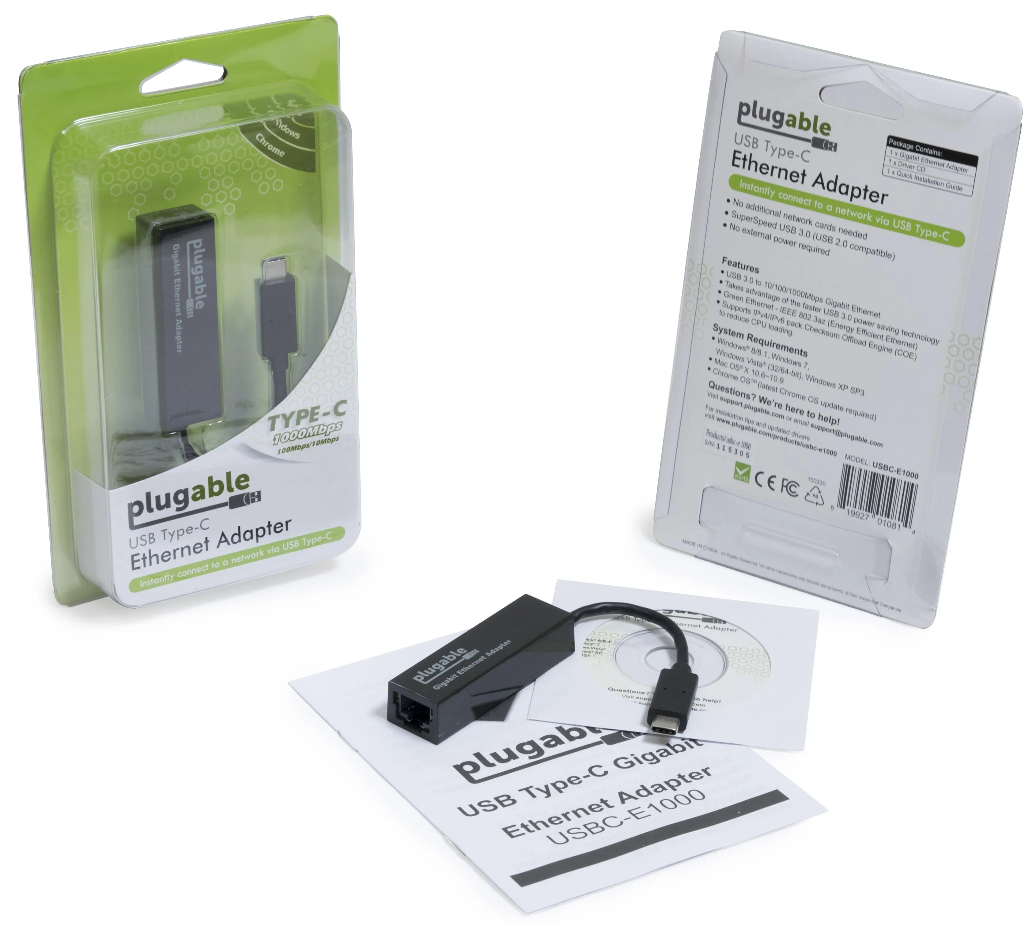 Plugable USBC-E1000 Plugable Usb C Ethernet Adapter Fast And Reliable Gigabit Connection Compatibl