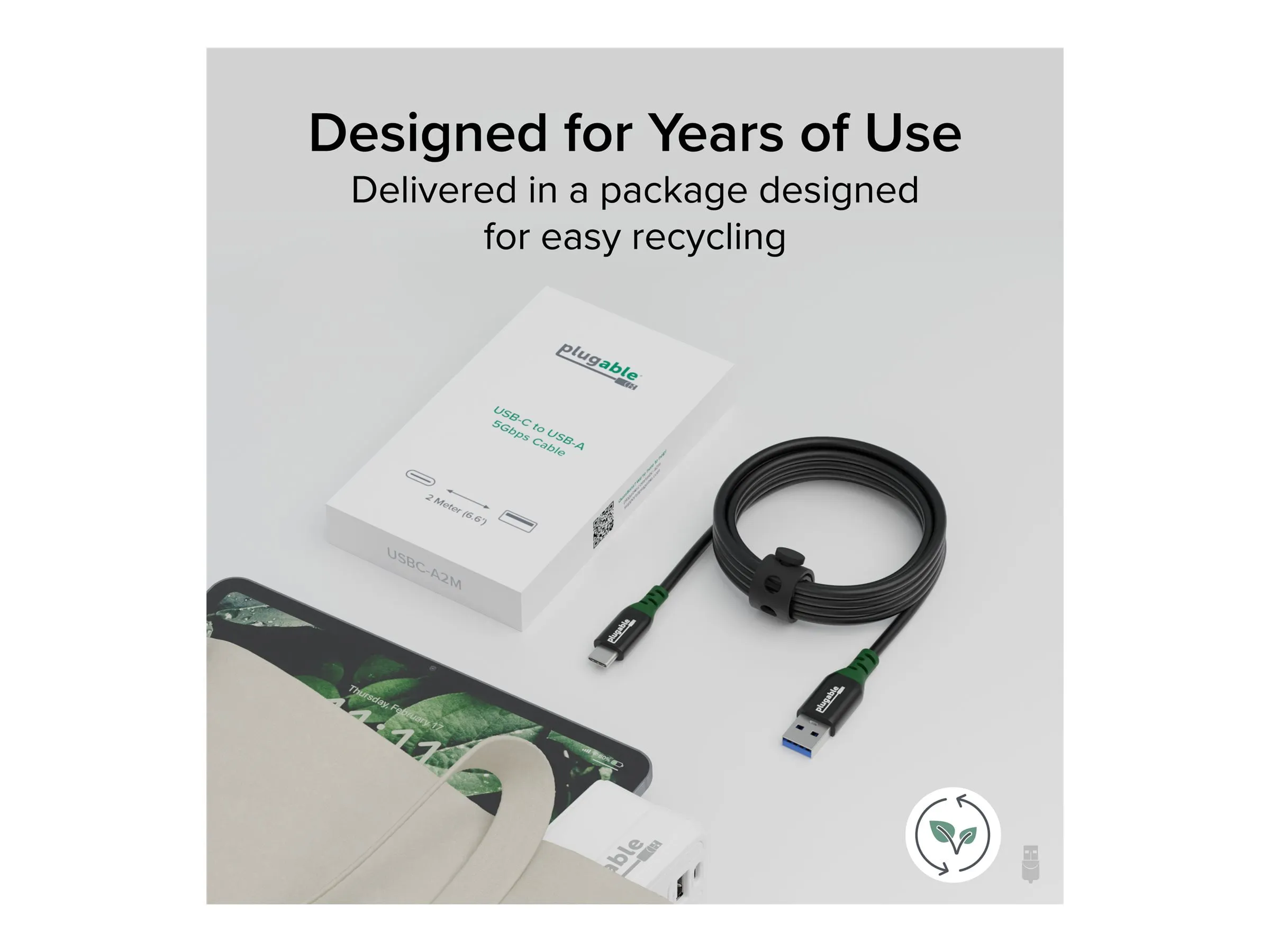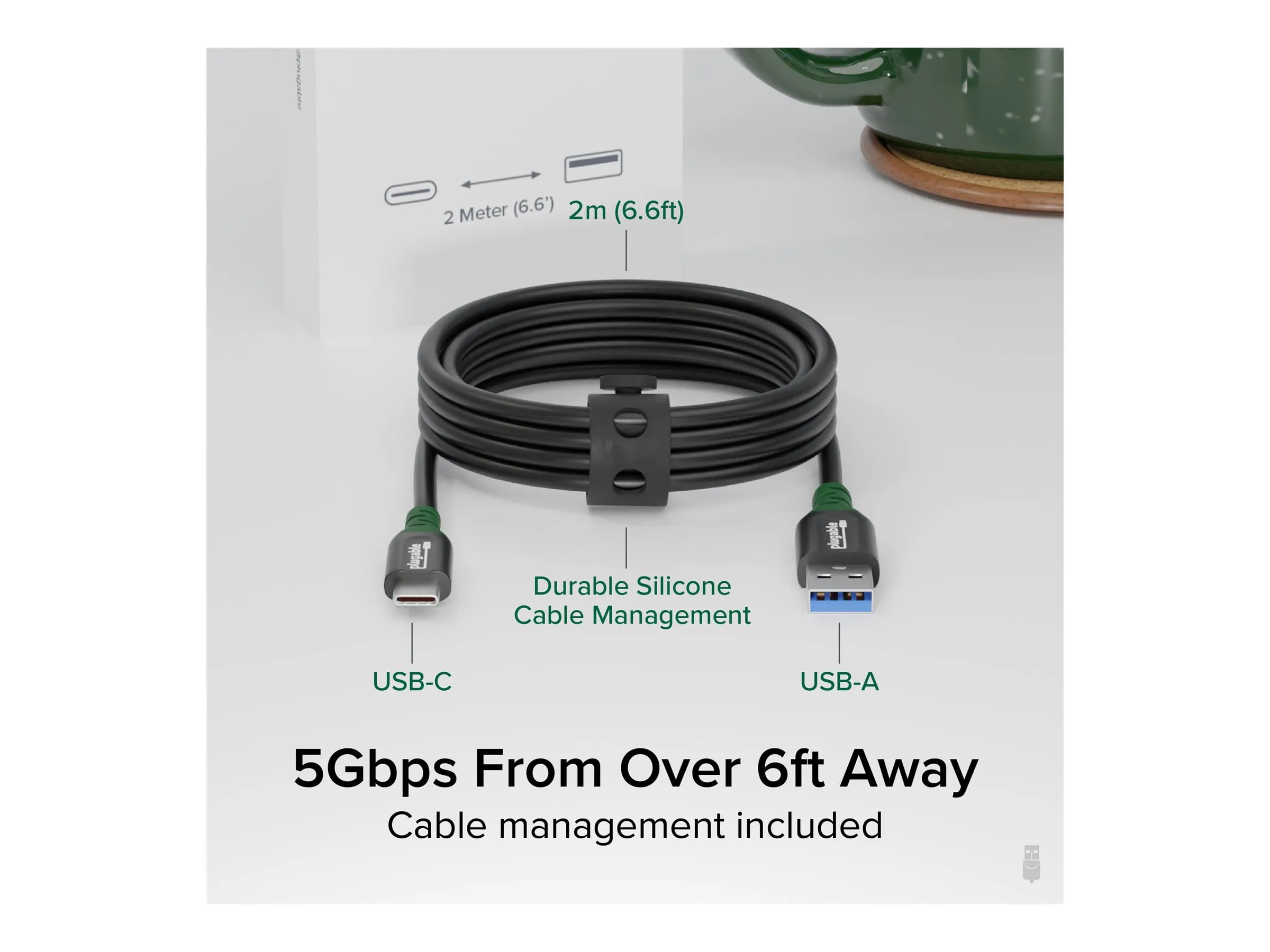 The Plugable USB-C to USB-A Cable allows for fast and efficient data transfer at speeds up to 5Gbps.