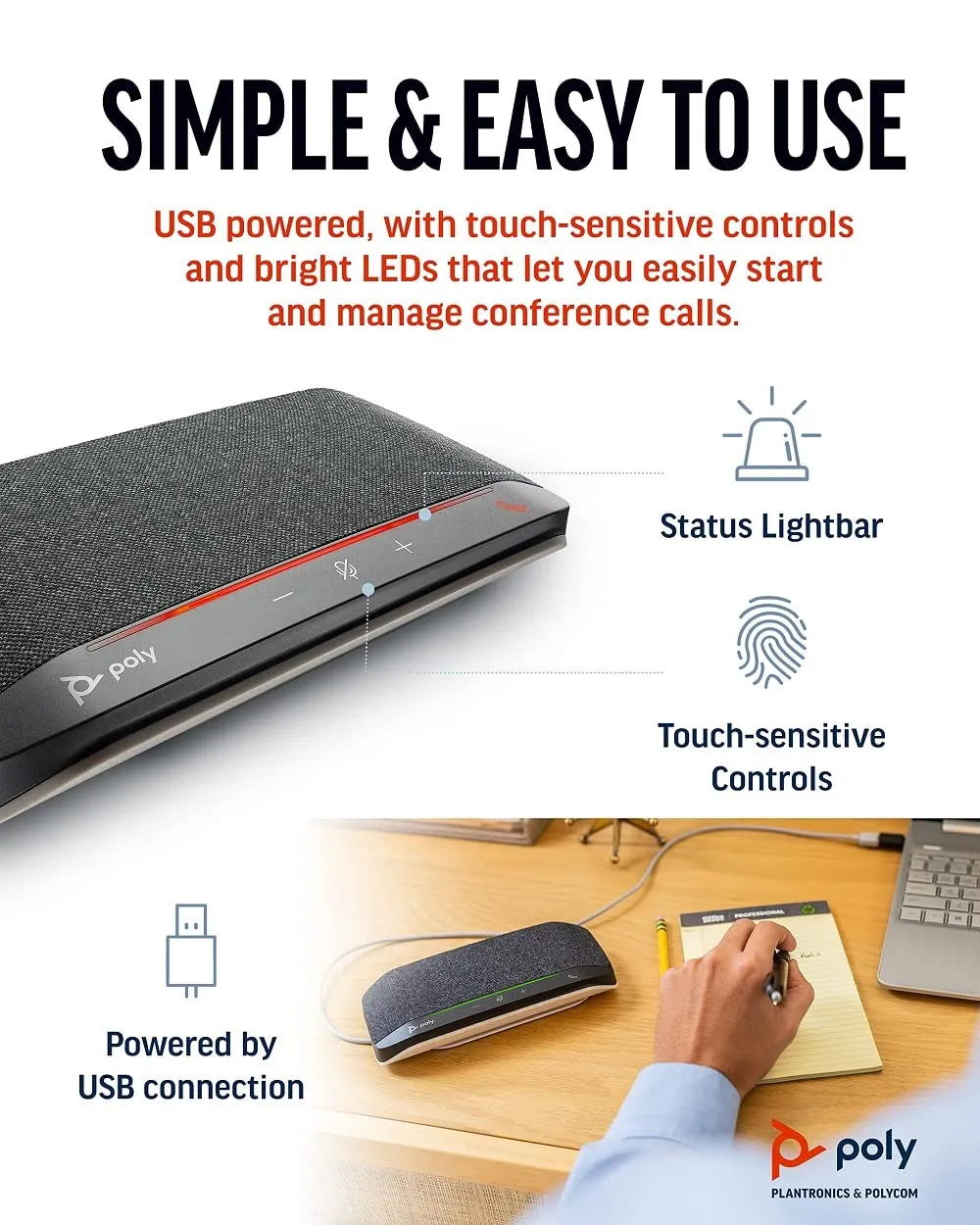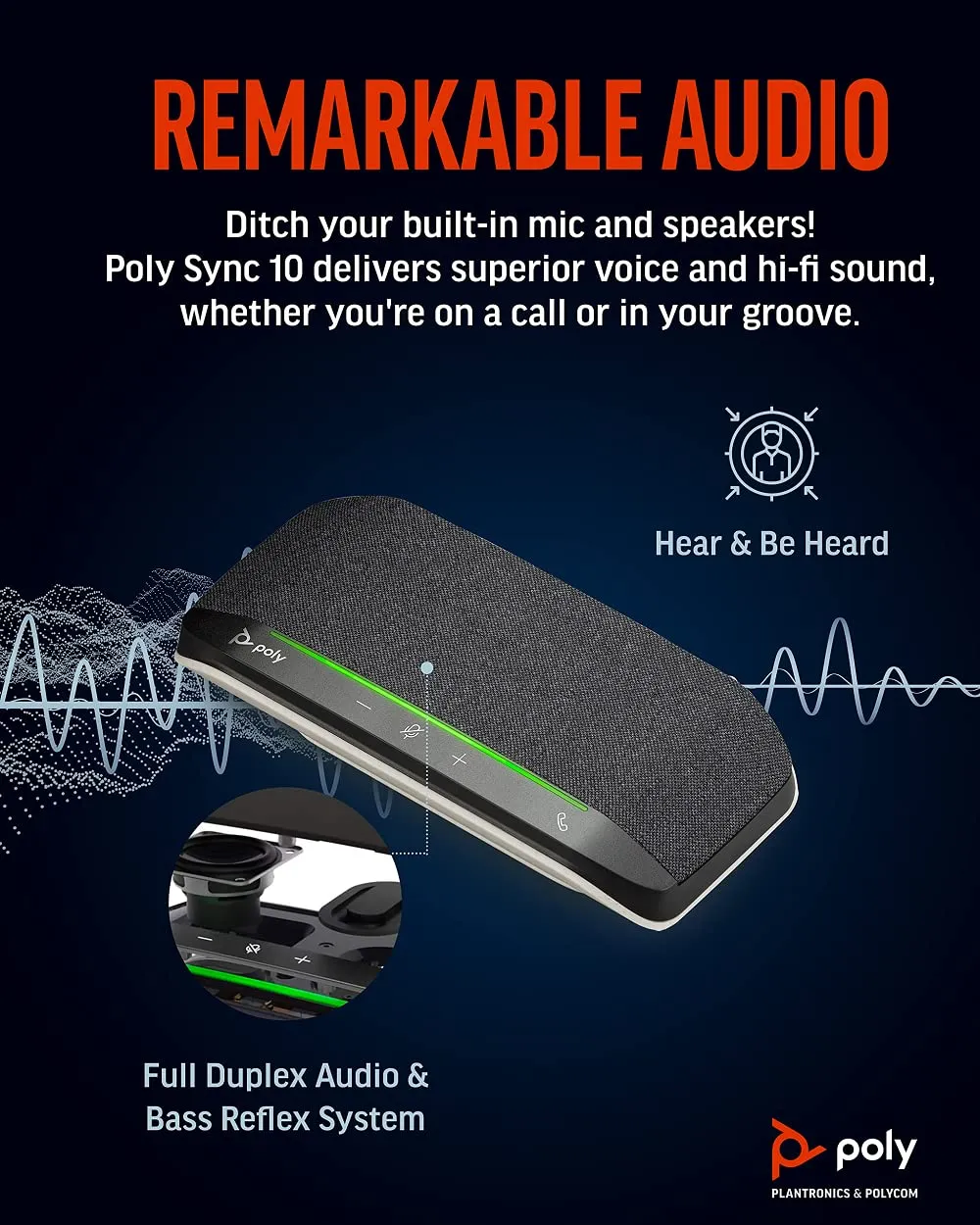 The Poly Sync 10 is a portable USB speakerphone designed for seamless communication in any environment. With its compact size and powerful audio capabilities, it enhances conference calls, allowing you to connect via USB-A or USB-C effortlessly.