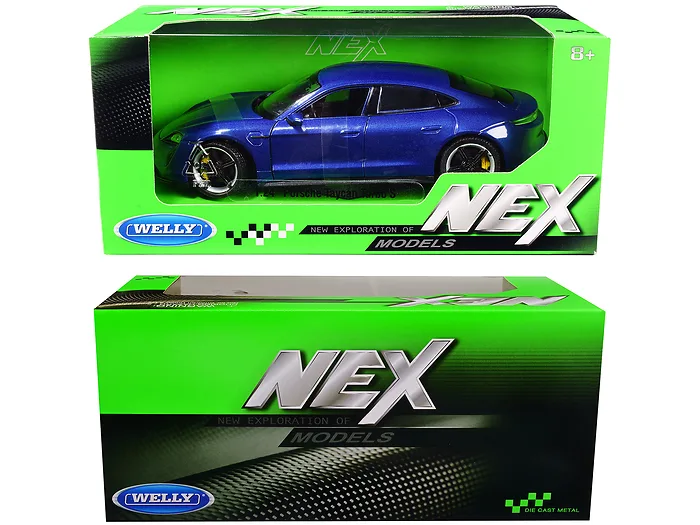 - Brand new 1/24 scale diecast car model of Porsche Taycan Turbo S Blue Metallic "NEX Models" die cast model car by Welly.