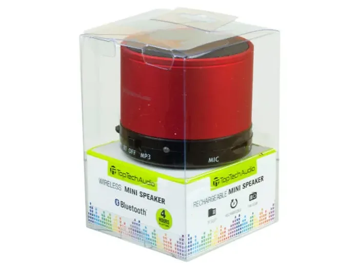 The Portable Bluetooth Mini Speaker in Red is your ultimate music companion, designed for up to 4 hours of playback. Connect effortlessly to your device and enjoy your favorite tracks wherever you go. This compact speaker fits perfectly in bags and backpacks, making it the ideal travel accessory.