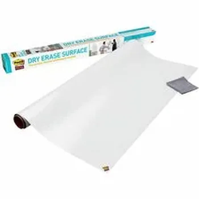 Instant, flexible whiteboard solution allows you to easily transform painted drywall, glass, painted steel, finished wood or even old dry-erase and chalkboards into a dry-erase board. Easily install Post-it Super Sticky Dry-Erase Surface. It requires no tools. Simply unroll, peel and stick. Utilizing a proprietary dry-erase coating, this dry-erase surface is stainproof, erases cleanly every time and writes smoothly. Use anywhere from horizontal applications on desks or tables to vertical applications on surfaces where traditional whiteboards cannot be installed, such as windows. Cut to fit for endless possibilities for dry-erase solutions in new places. Post-it Super Sticky Dry Erase Surface is great for replacing old dry-erase surfaces that may be ghosted. Simply apply over the existing board, and it looks new again.