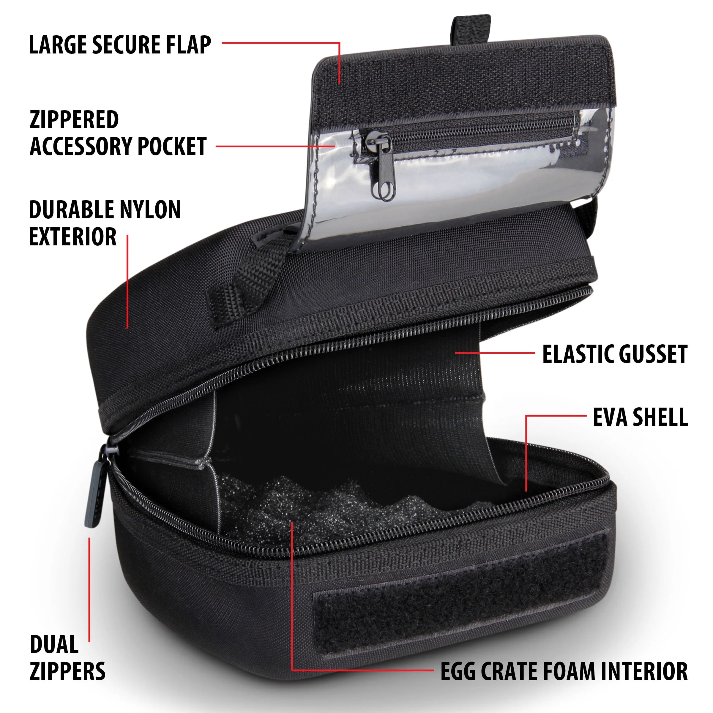 - Dedicated compartments for lenses and accessories