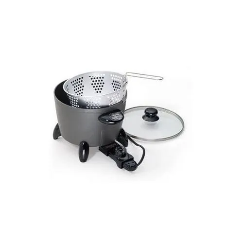 The Options multi-cooker steams, deep fries, stews, roasts, boils and more. Deep fry up to 6 servings of French fries, make soups and casseroles, steam vegetables and rice, cook pasta, and roast meat and poultry. Nonstick finish, inside and out. Tempered glass cover and versatile steam/fry basket.