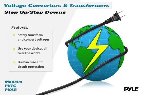 Pyle PVTC320U Step Up and Step Down 500-Watt Voltage Converter Transformer with USB Charging Port