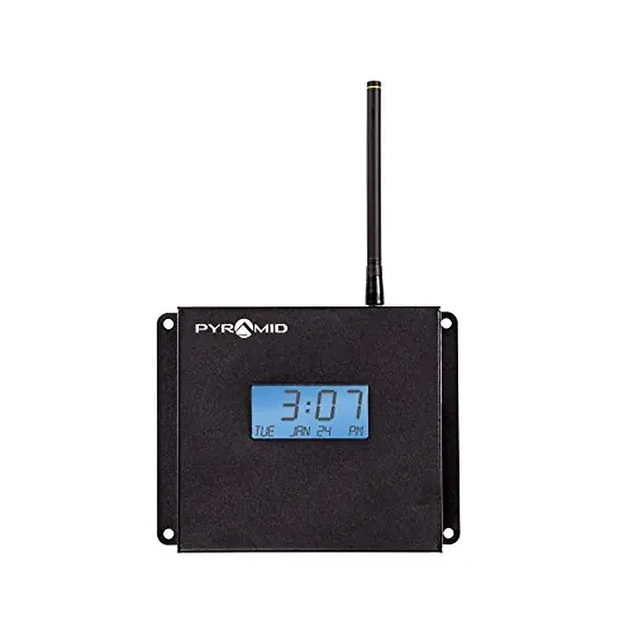The Pyramid Time Systems TimeTrax Sync Wireless RF Wall Mount Add-On Transmitter is designed to integrate seamlessly with your existing TimeTrax system. This transmitter enables accurate time synchronization and communication within your network, ensuring that all devices are in sync and functioning optimally.