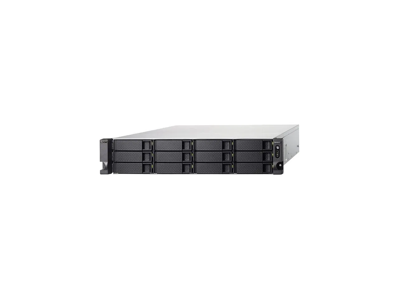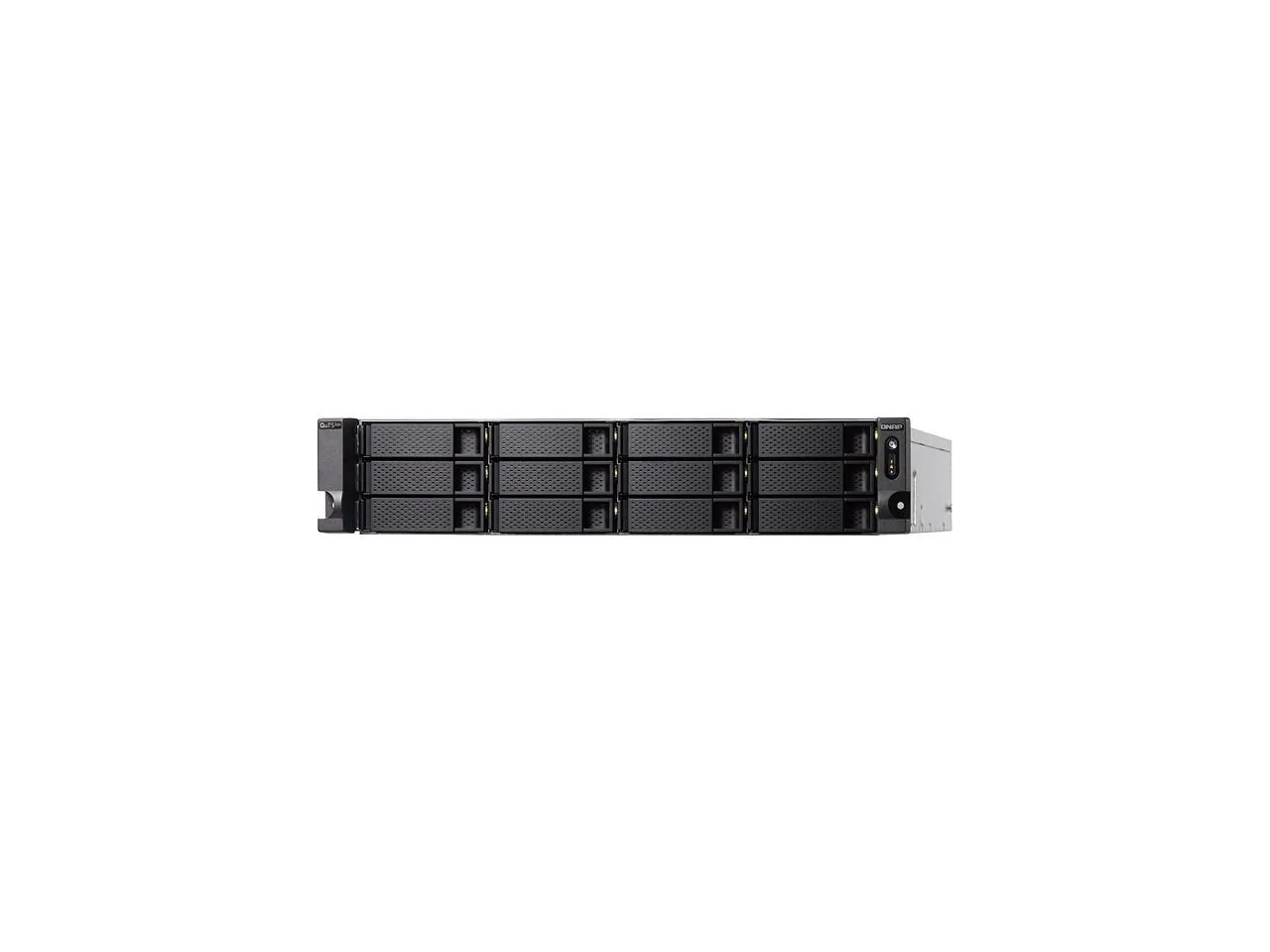 The QNAP 2U 18-Bay NAS is designed for high-performance storage solutions, featuring a combination of 12 hard drive bays for 3.5-inch SATA drives and 6 bays for 2.5-inch SATA SSDs. With support for SATA 6Gbps, this NAS offers significant data transfer speeds and robust performance suitable for businesses and power users.