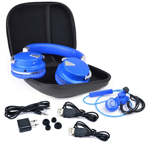 Que E228184-BLU Rechargeable Bluetooth Wireless Headphones Amp;wireless Earbuds Wmicrophone Amp; 3x Eartips Blue