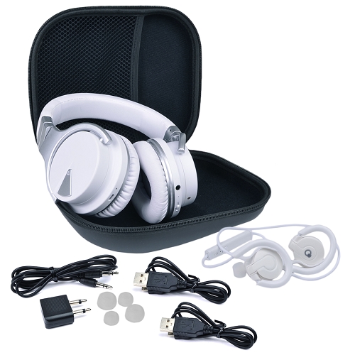 - Que Design E228184-WHT Rechargeable Bluetooth WirelessHeadphone & Wireless Earbuds