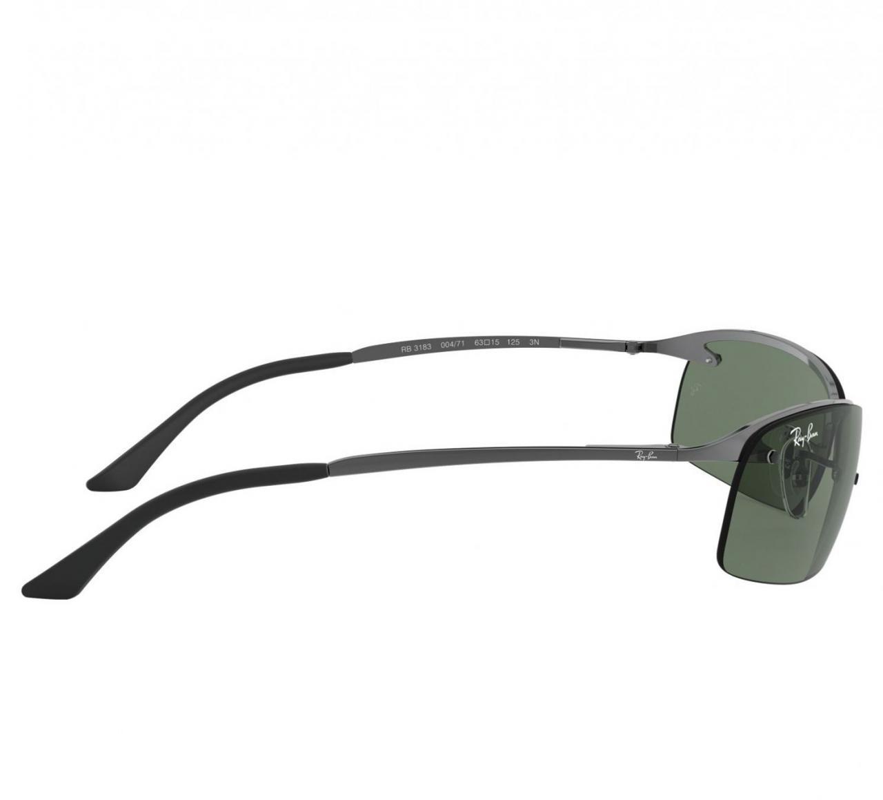 Ray-Ban RB3183-004/71 Unisex Polished Gunmental Rectangle Green Lens Metal Sunglasses Ray-Ban RB2319-128933 Unisex Polished Gunmental Rectangle Green Lens Metal Sunglasses includes case, cloth and 30 days return. The Ray-Ban ? RB3183 sunglasses are slick and like speed. The sunglasses feature a lightweight semi-rimless rectangular shape and the temples have a classic Ray-Ban printed logo. Soft, adjustable nose pads add comfort and durability no matter what you're doing while you wear these daring sunglasses. Features: Brand: Ray-Ban Collection: Ray-Ban Sunglasses Model Number: RB3183-004/71 Gender: Unisex Frame Color: Polished Gunmental Frame Material: Metal Frame Shape: Rectangle Lens Color: Green Lens Size: 63 mm Bridge size: 15mm Temple Length: 125m UPC: 805289018919 Ray-Ban RB3183-004/71 MSRP: $150