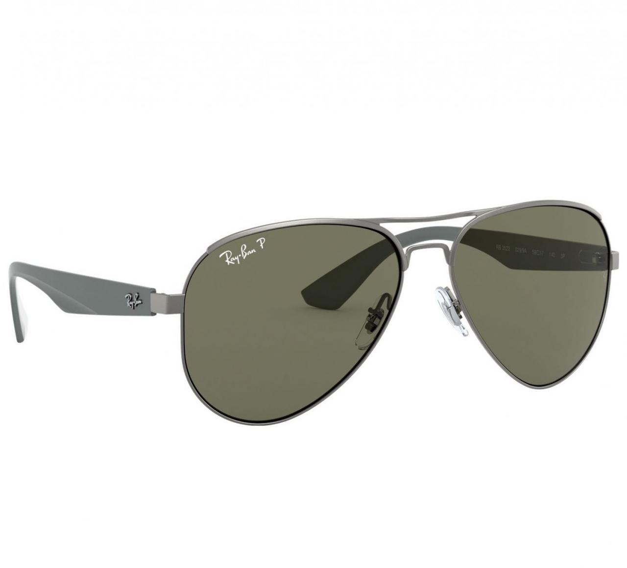 Ray-Ban RB3523-0299A Unisex Matte Gunmetal Pilot Green Lens Metal Sunglasses Ray-Ban RB3523-0299A Unisex Matte Gunmetal Pilot Green Lens Metal Sunglasses includes case, cloth and 30 days return. It's safe to say the RB3523 shows that some things are too good to go out of style. These sunglasses are the latest tribute to the iconic Ray-Ban design, the Aviator. While the original was designed for jet pilots, this modern design is the perfect adaptation for the busy civilian life. Featuring sand finish temples in sleek metal colors, it's the perfect 21st update of a timeless classic. Features: Brand: Ray-Ban Collection: Ray-Ban Sunglasses Model Number: RB3523-0299A Gender: Unisex Frame Color: Matte Gunmetal Frame Material: Metal Frame Shape: Pilot Lens Color: Green Lens Size: 59 mm Bridge size: 17mm Temple Length: 140m UPC: 8053672320442 Ray-Ban RB3523-0299A MSRP: $175