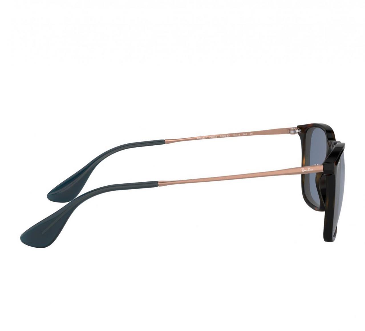 Ray-Ban RB4187-639080 Unisex Gloss Tortoise Square Blue Lens Injected Sunglasses Ray-Ban RB4187-639080 Unisex Gloss Tortoise Square Blue Lens Injected Sunglasses includes case, cloth and 30 days return. Ray-Ban Chris sunglasses are a stylish new addition to the Highstreet collection. These unisex sunglasses are designed with unique style cues taken from the Erika style, but spun into a slightly more masculine shape with square lenses and a less circular frame shape. Chris RB4187 sunglasses have been crafted with a gummy and rubberized frame finish, giving these trend setting sunglasses an exclusive textured feel. The Ray-Ban Chris epitomizes modern day fashion packed into a lightweight, comfortable design. Choose Chris in traditional black or tortoise frames or some bolder frame colors such as blue, green and red that will ensure you don't go unnoticed. Features: Brand: Ray-Ban Collection: Ray-Ban Sunglasses Model Number: RB4187-639080 Gender: Unisex Frame Color: Gloss Tortoise Frame Material: Metal Frame Shape: Square Lens Color: Blue Lens Size: 54 mm Bridge size: 18mm Temple Length: 145m UPC: 8053672977219 Ray-Ban RB4187-639080 MSRP: $138