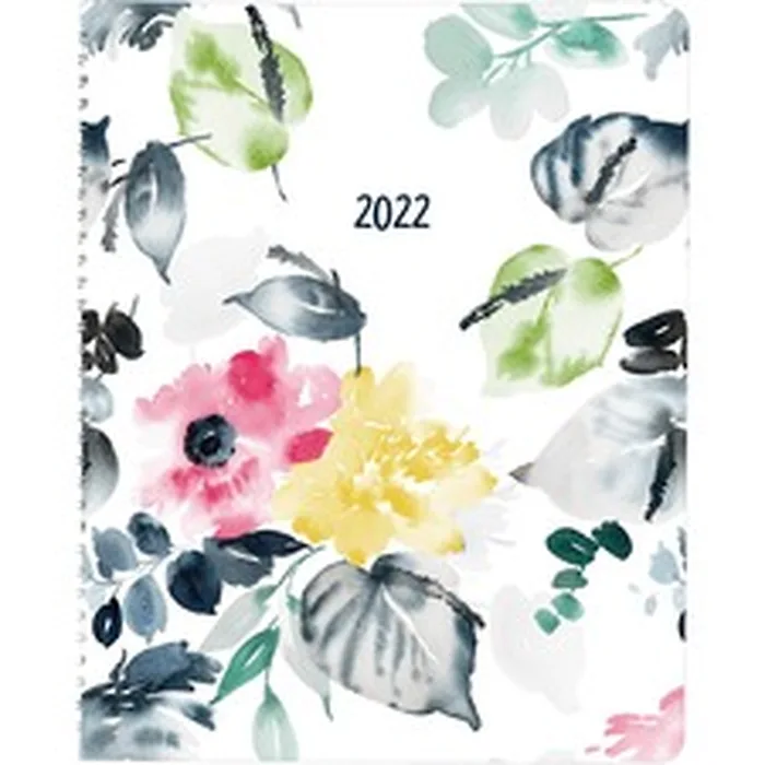 Weekly/Monthly Appointment Planner features a colorful, watercolor design for a stylish way to organize your schedule. Dated planning pages range 12 months from January to December. Weekday appointment schedule ranges from 7 AM to 8:45 PM in 15-minute intervals and on Saturdays from 7 AM to 5:45 PM in 15-minute intervals. Ruled space for Sundays lets you keep track of important notes. Monthly planner before each month helps you stay organized. Twin-wire binding allows you to flip pages completely over and lie flat for easier handwriting. Thick, durable cover helps keep the pages safe throughout the entire year. Phone/address section offers a handy area to keep track of your contacts.