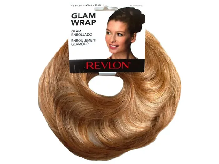 Revlon Ready-to-Wear hair Glam Wrap in Golden Blonde is perfect for adding style and fullness. Make every day a glamorous updo with this hairpiece. Pull your hair back into a bun and wrap the piece around the bun. Style it and be on your way to a beautiful day. The hairpiece is approximately 6" and includes an elastic band attached to the synthetic hair. It comes packaged in a polybag with a header card.