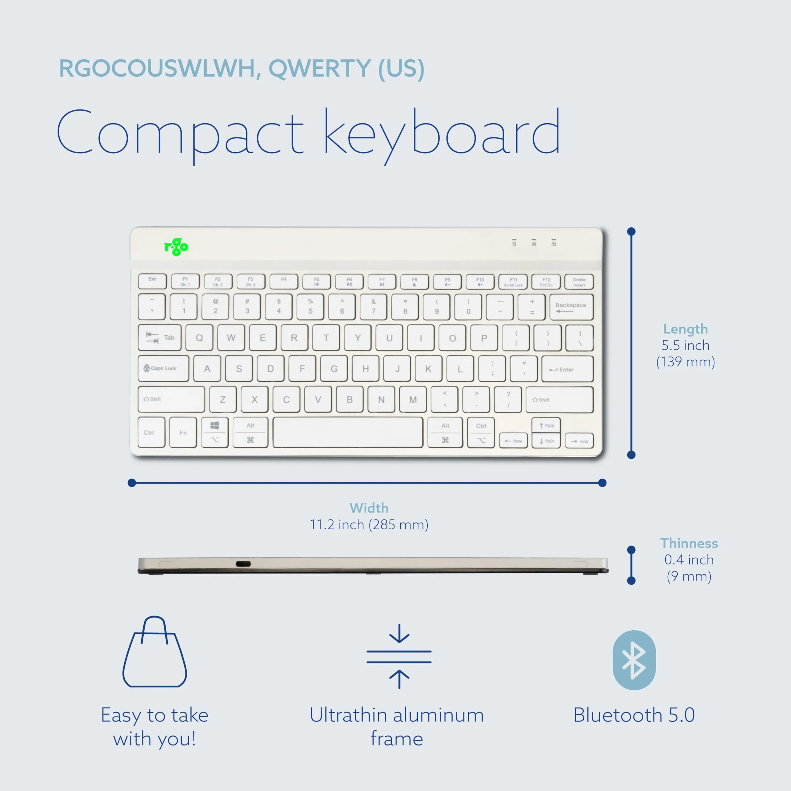 Rgo RGOCOUSWLWH Compact Bluetooth Keyboard Qwerty Us White