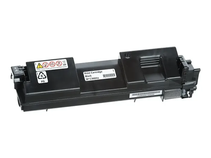 High yield black toner cartridge for use with ricoh spc360dnw, spc360sfnw. This is a OEM MONOCHROMATIC TONER RICOH brand Toner Cartridge (HI BLACK TONER) that works with the following printers / machines (SPC360DNw, SPC360SFNw). Product Features: Cartridge Yield: High Yield Compatible with: Ricoh SP C360DNw, SP C360SFNw Duty Cycle: Up to 7000 pages Printing Color: Black Printing Technology: LED Product Description: Ricoh SP C360HA - High Yield - black - original - toner cartridge Product Type: Toner cartridge. HIGH YIELD BLACK TONER. SPC360DNw, SPC360SFNw. OEM RICOH Brand.