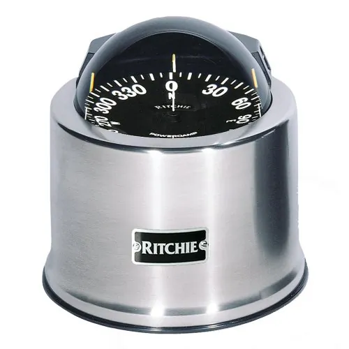 The Ritchie GlobeMaster SP-5-C is a marine compass designed for precision navigation on the water. This compass features a sleek stainless steel design and is tailored for pedestal mounting, making it a perfect addition to your boat's dashboard. Operating on a 12V system, it provides a clear 5-degree card reading, ensuring you stay on course during all your sailing adventures.