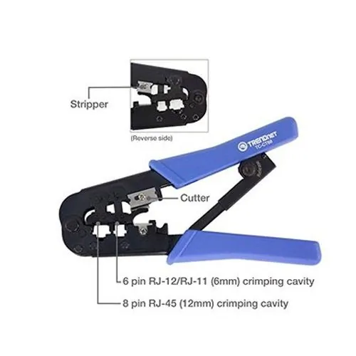 TRENDnet's Professional Crimp Tool TC-CT68 ---For your variety of network needs, TRENDnet has a tool specifically designed to maintain network accessories. Our professional crimp tool TC-CT68 crimps, strips, and cuts cable for 8 and 6 position modular plugs. The crimp tool offers reliable, easy-to-use, and affordable solution to meet immediate cutting needs. Our professional crimp tool delivers convenience at a very economical price. RoHS Compliant