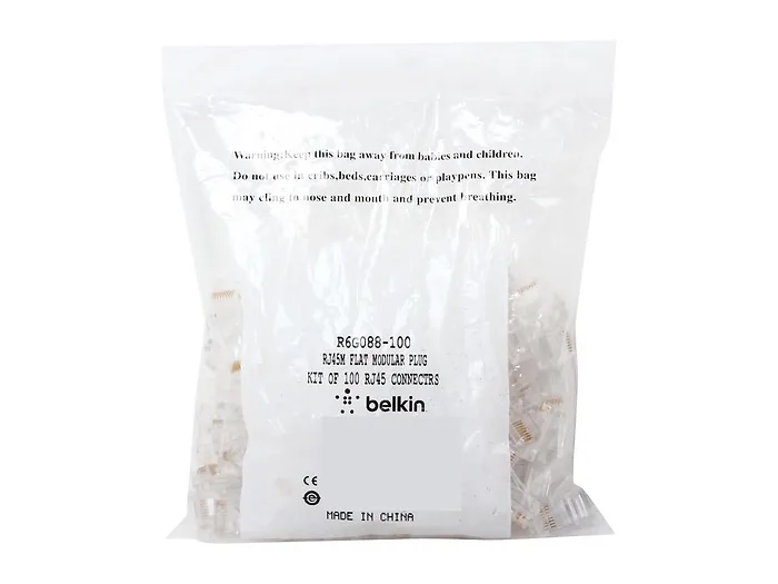 Belkin R6G088-100 Rj45m Flat Modular Plug Kit Of 100 Rj45 Connectrs