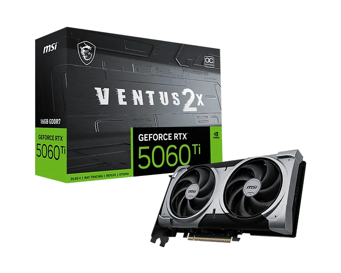 The MSI GeForce RTX 5060 Ti VENTUS 2X is equipped with 16GB of fast GDDR6 memory, providing exceptional gaming performance and visuals. With advanced cooling solutions and a robust construct, this graphics card features cutting-edge Ray Tracing technology for realistic lighting effects and shadows, ensuring the most immersive gaming experience.