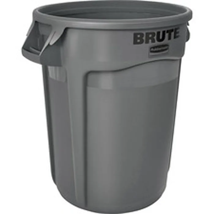 Rubbermaid RCP 263200GYCT Commercial Brute Vented Container 32 Gal Capacity Round Heavy Duty Handle Tear Resistant Damage Resistant Durable Uv Coated Fade Resistant Crack Resistant Crush Resistant Warp Resistant Reinforced Gray 6 Carton