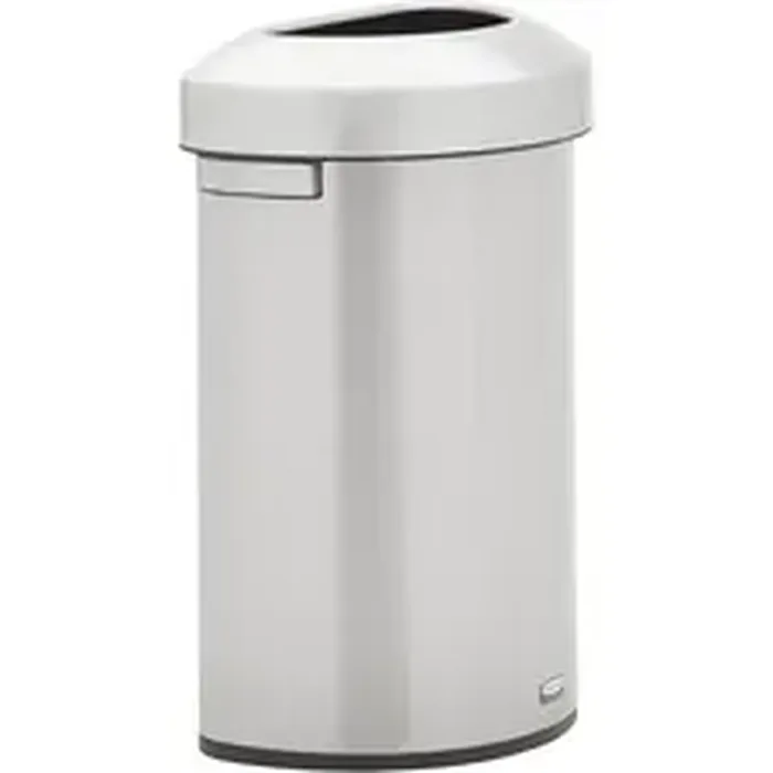 Rubbermaid RCP 2147550 Commercial Refine Halfround Waste Container 16 Gal Capacity Halfround Ergonomic Handle Nonskid Fingerprint Resistant Durable 29.5 Height X 12.4 Width X 18.2 Depth Metal Stainless Steel 1 Each