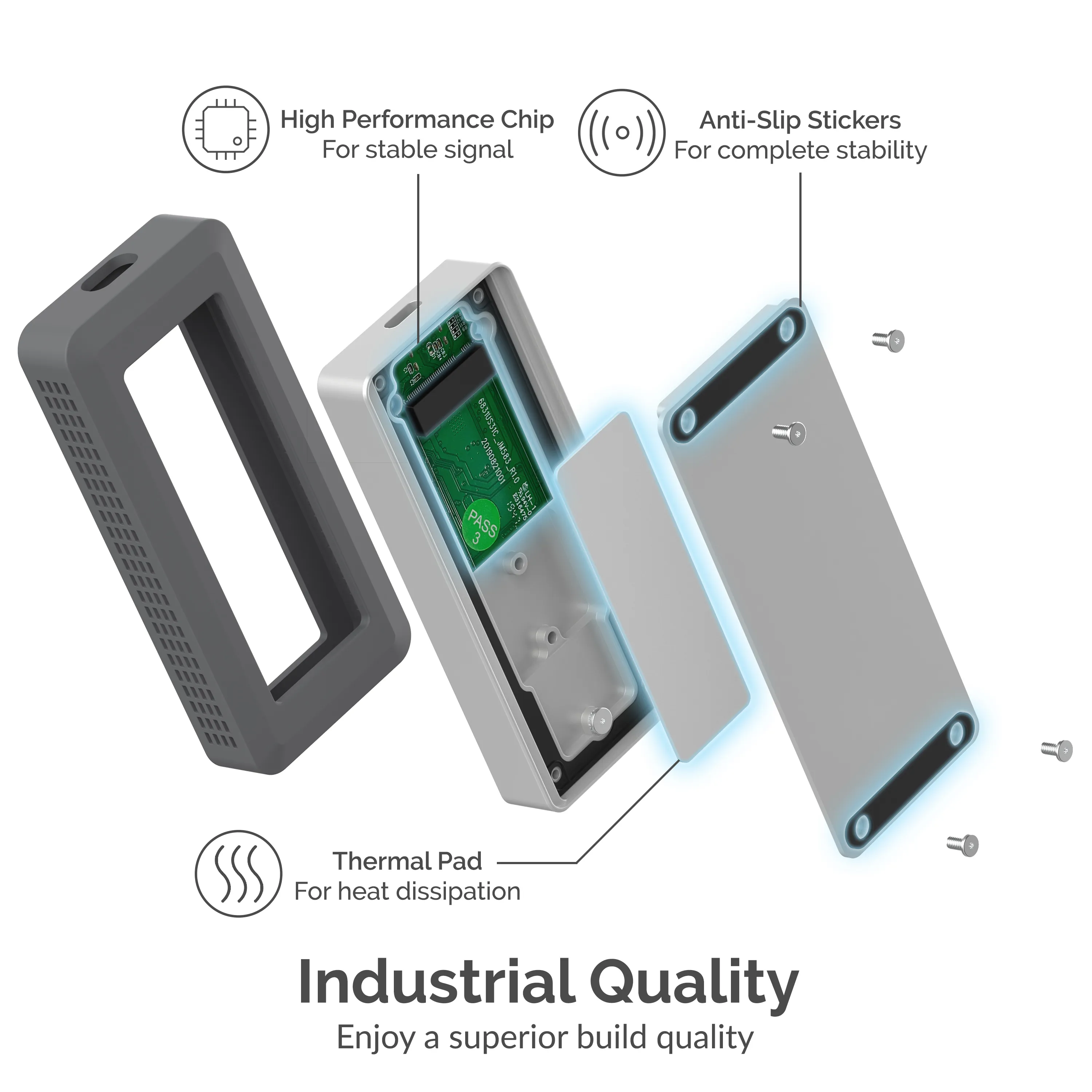 The Rugged Waterproof M.2 NVMe Enclosure is designed to provide ultimate protection for your M.2 NVMe SSD. With an IP67 rating, this enclosure ensures your data is safe from water, dust, and impact, making it ideal for outdoor and rugged environments.