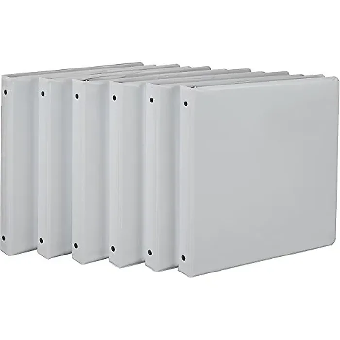 The Samsill Economy View Binder set includes six .5" white binders, perfect for organizing documents with style and efficiency. Each binder features a customizable clear overlay on the front, back, and spine, allowing for personalized labeling. Designed with exposed-rivet construction, these binders are durable and equipped with two clear inside pockets for extra storage.