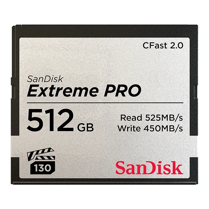 The SanDisk Extreme Pro CFast 2.0 card is designed for professionals who demand high-performance storage solutions. With a capacity of 512GB, this card delivers exceptional read and write speeds, making it ideal for Full HD and 4K video recording.