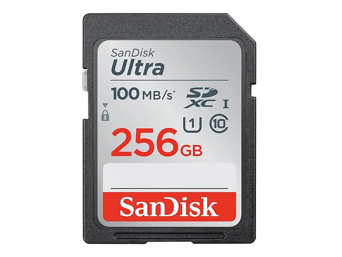The SanDisk Ultra SDHC Memory Card offers reliable storage for all your photos and videos. With a capacity of 256GB, it provides ample space for your memories, ensuring you never run out of storage. This card is designed for fast performance, featuring speeds up to 100MB/s, allowing for quick file transfers and smoother video recording.