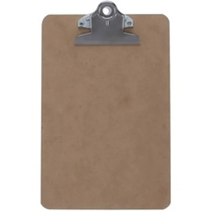 Hardboard clipboard is made from a high percentage of recycled and/or recovered material and is equipped with standard spring-action clip and built-in hanging hole. High-capacity clip securely holds a paper stack of up to 1". Clipboard is made of durable, 1/8" thick brown hardboard with smooth finish front and back.