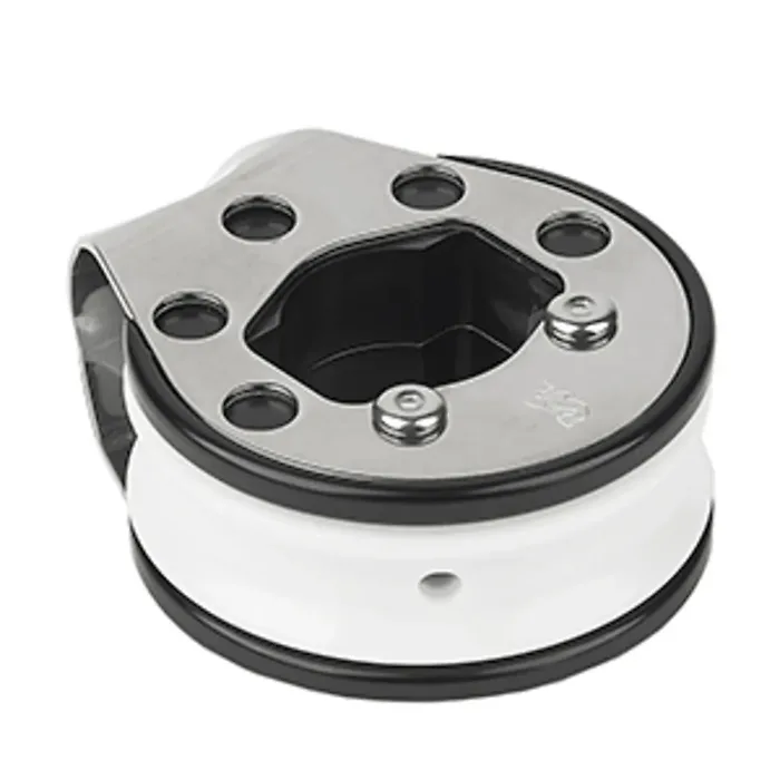 Unique design leads your furling control line outside of your stanchions for a clean lead aft to the cockpit. Stainless cheeks with Delrin(tm) ball bearing sheave ensure low-friction and high strength. Locks in place with a small set screw accessed through a small hole in the sheave.