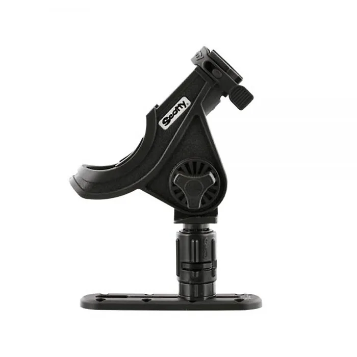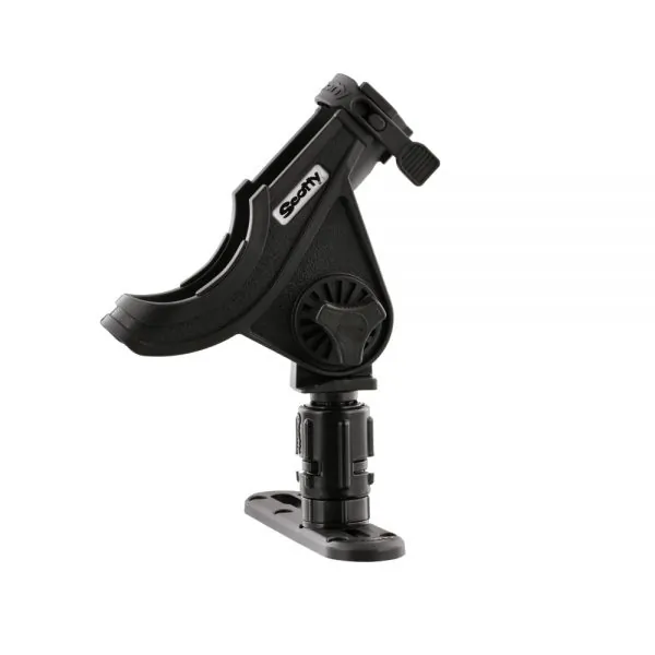 The Baitcaster/Spinning Rod Holder and Track Combo offers a versatile rod holder for any angler. The baitcaster reel sits in a cushioned cradle while a front slot allows for a spinning reel. The open bottom allows for the rod holder to accommodate trigger grips as well. Rods can be secured with a soft latching strap which snaps over the top for baitcaster or under the bottom for spinning reels. The 438 Gear-Head Track Adapter quickly slides into place and locks down Scotty rod holders and accessories, allowing you to quickly change rod holder positions with a simple twist. The Scotty 440-4 Low Profile Track is made from high strength composite material. The track can be quickly and easily installed on a kayak, canoe, or any other watercraft.Versatile rod holder for any angler