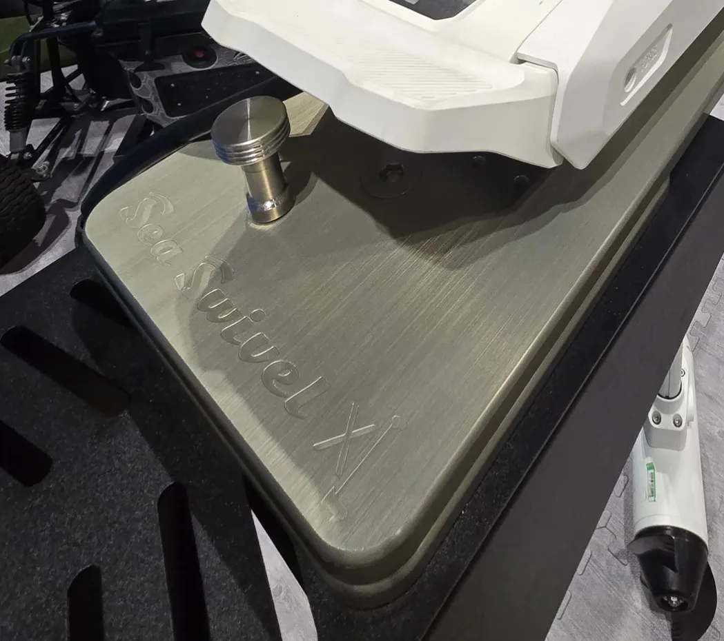 Model: SEAHDMTMMXLThe XL Sea Swivel is designed for trolling motors 100+ and have a larger surface area (10"X10") and also a larger backing plate (10"X10"). They distribute the load to a larger surface area of the fiberglass.