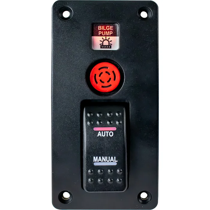 This effective bilge pump water alarm panel features a control switch that provides both an audible and visual warning when the water level in your bilge exceeds the float switch level. This unit eliminates the need for a separate bilge pump switch, as it allows you to toggle between automatic and manual (momentary on) operation of your bilge pump.